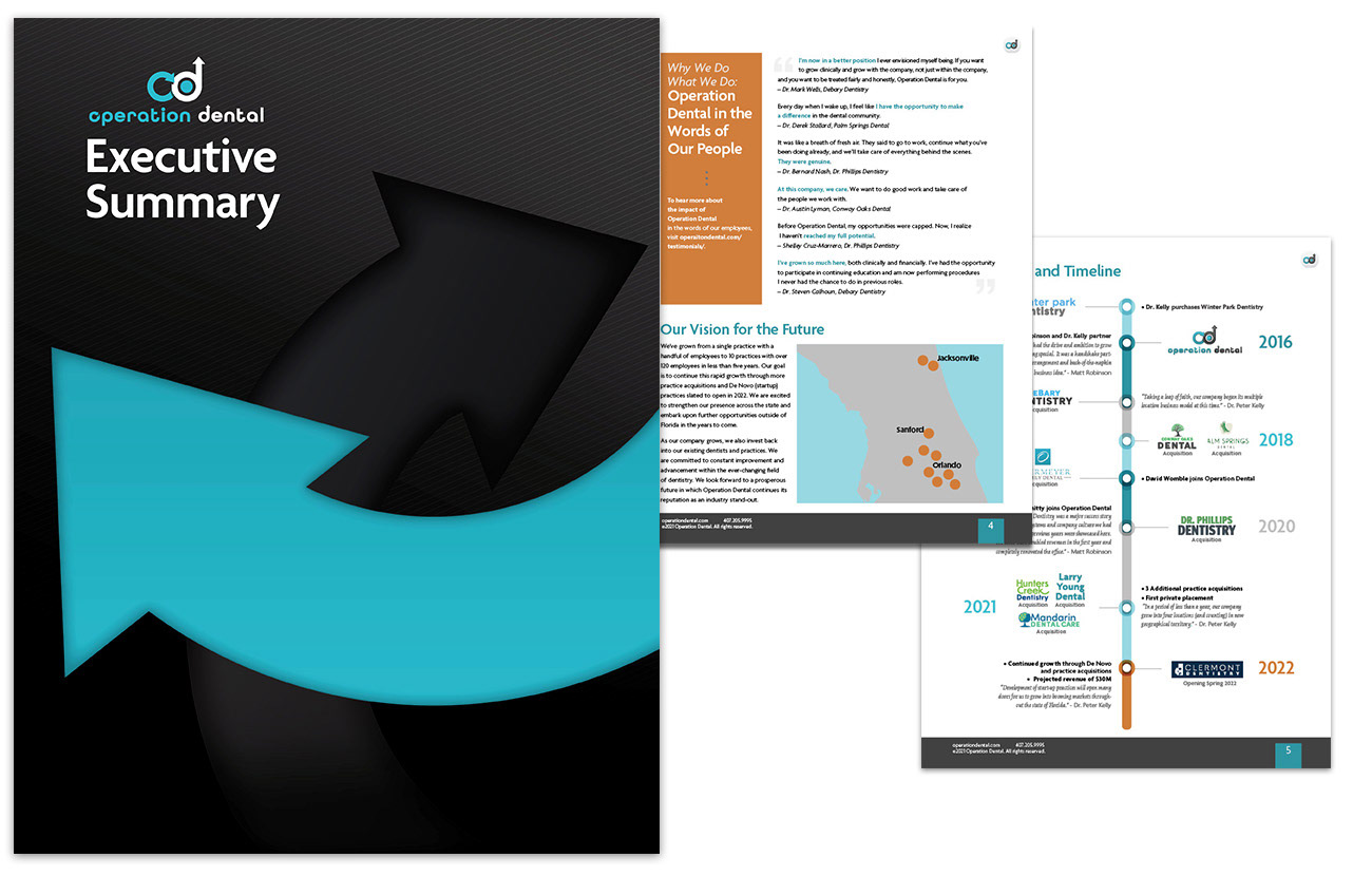 Create all visual elements for Operation Dental Corporation and all 17 individually branded practices.