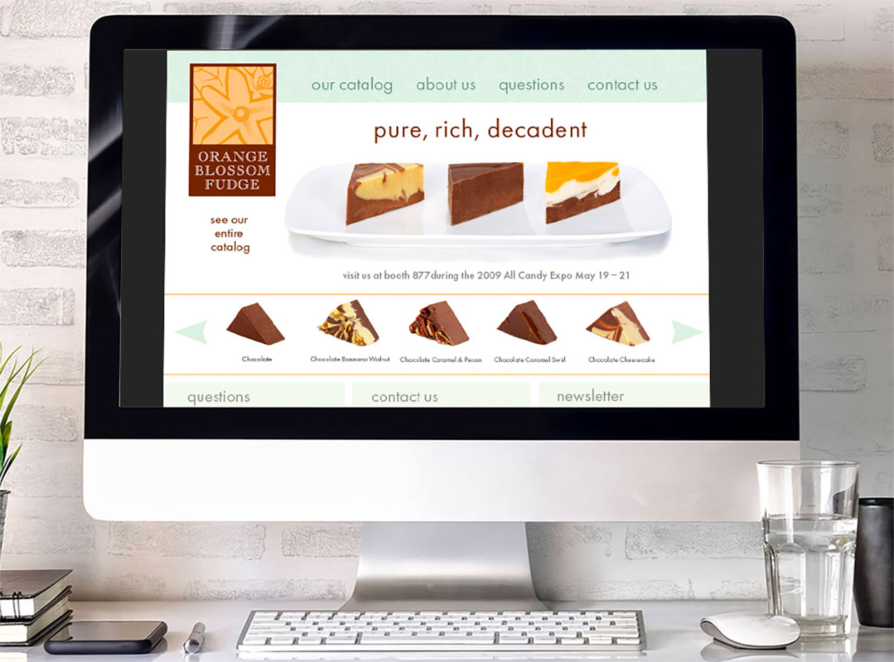 Orange Blossom Fudgeadmin2024-07-18T15:44:13+00:00 Orange Blossom FudgeDeveloped the brand, including naming, logo, copywriting, collateral, trade show display, and art direction at the photoshoot. LogoLogoImage BrochureImage BrochureTrade Show DisplayTrade Show DisplayWebsiteWebsiteExplore More of Hudson Marvel’s WorksOperation Dentaladmin2024-07-18T16:19:53+00:00 Operation Dental Hilton Grand Vacationsadmin2024-07-18T15:39:58+00:00 Hilton Grand Vacations MetroWestadmin2024-07-18T15:41:24+00:00 MetroWest Packaging Projectsadmin2024-07-18T15:43:08+00:00 Packaging Projects Orange Blossom Fudgeadmin2024-07-18T15:44:13+00:00 Orange Blossom Fudge Digital Projectsadmin2024-07-18T15:46:55+00:00 Digital Projects Earl of Sandwichesadmin2024-07-18T15:47:53+00:00 Earl of Sandwiches Arnold Palmer Invitationaladmin2024-07-18T15:48:37+00:00 Arnold Palmer Invitational BoatTreeadmin2024-07-18T15:49:13+00:00 BoatTree